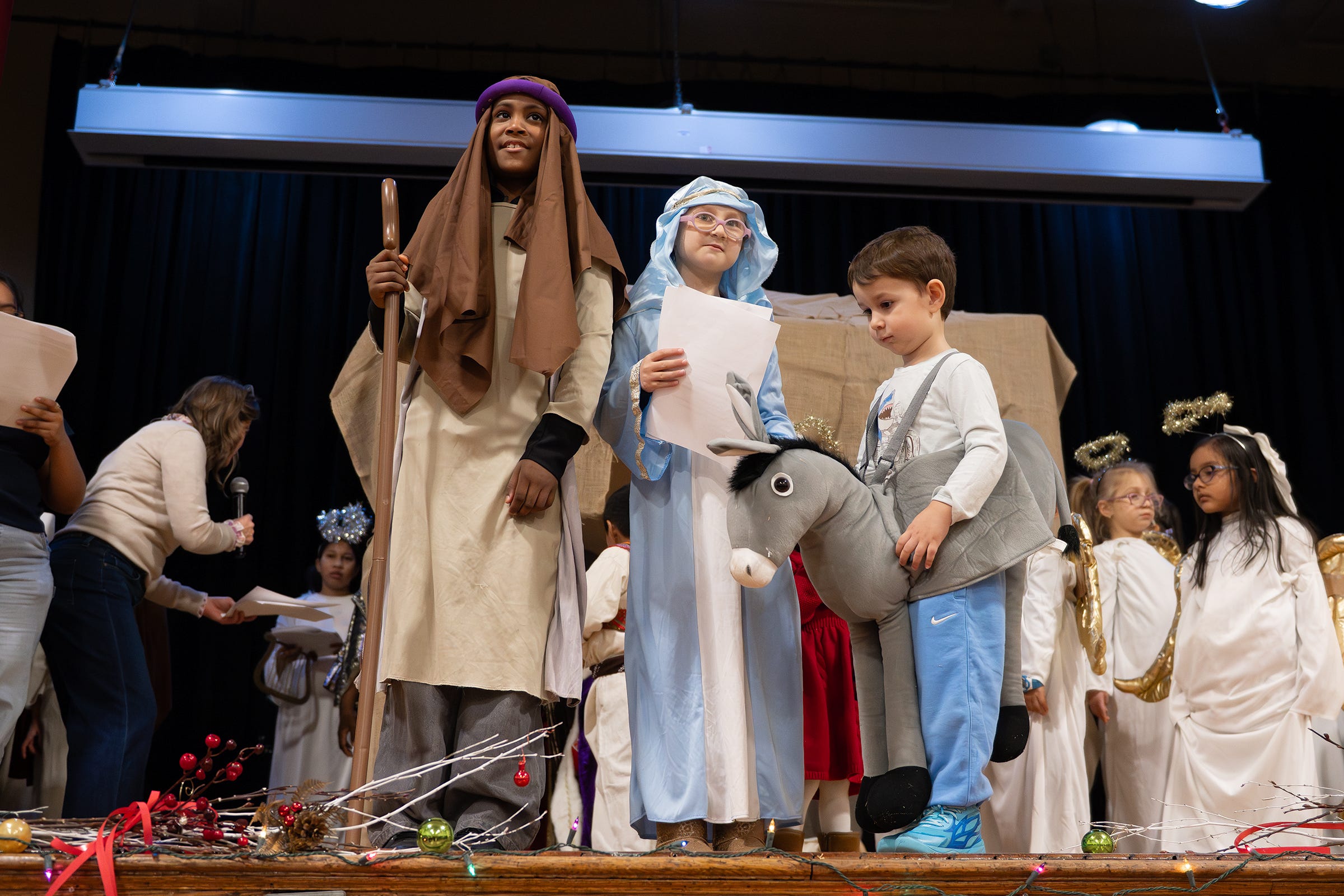 The Sisters move through the room with habits flailing, wide smiles, and that rare combination of command and tenderness that tells you they’ve done this before, and that they love doing it. Dozens of children swirl around them in costumes: angels, shepherds, sheep, and the assorted animals of Bethlehem. Parents, siblings, and friends fill the edges of the room, gathered in hopeful anticipation, hearts bursting with Christmas joy.