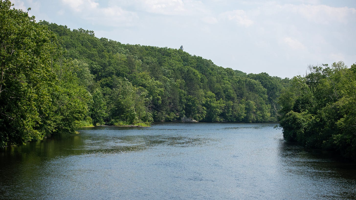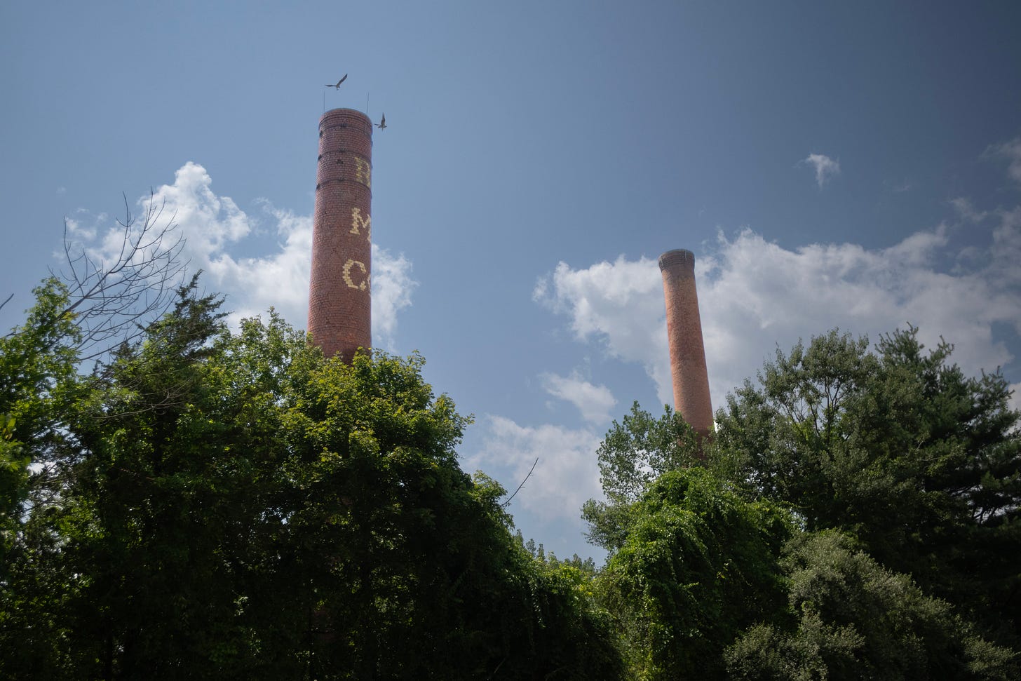 At the bottom of the hill, the river slid by like it had all the time in the world. The ruins along the water suggested a different story. Brick foundations swallowed by weeds, rusted pipes jutting out of nowhere, two lone smokestacks punching into the sky like exclamation points from another era.