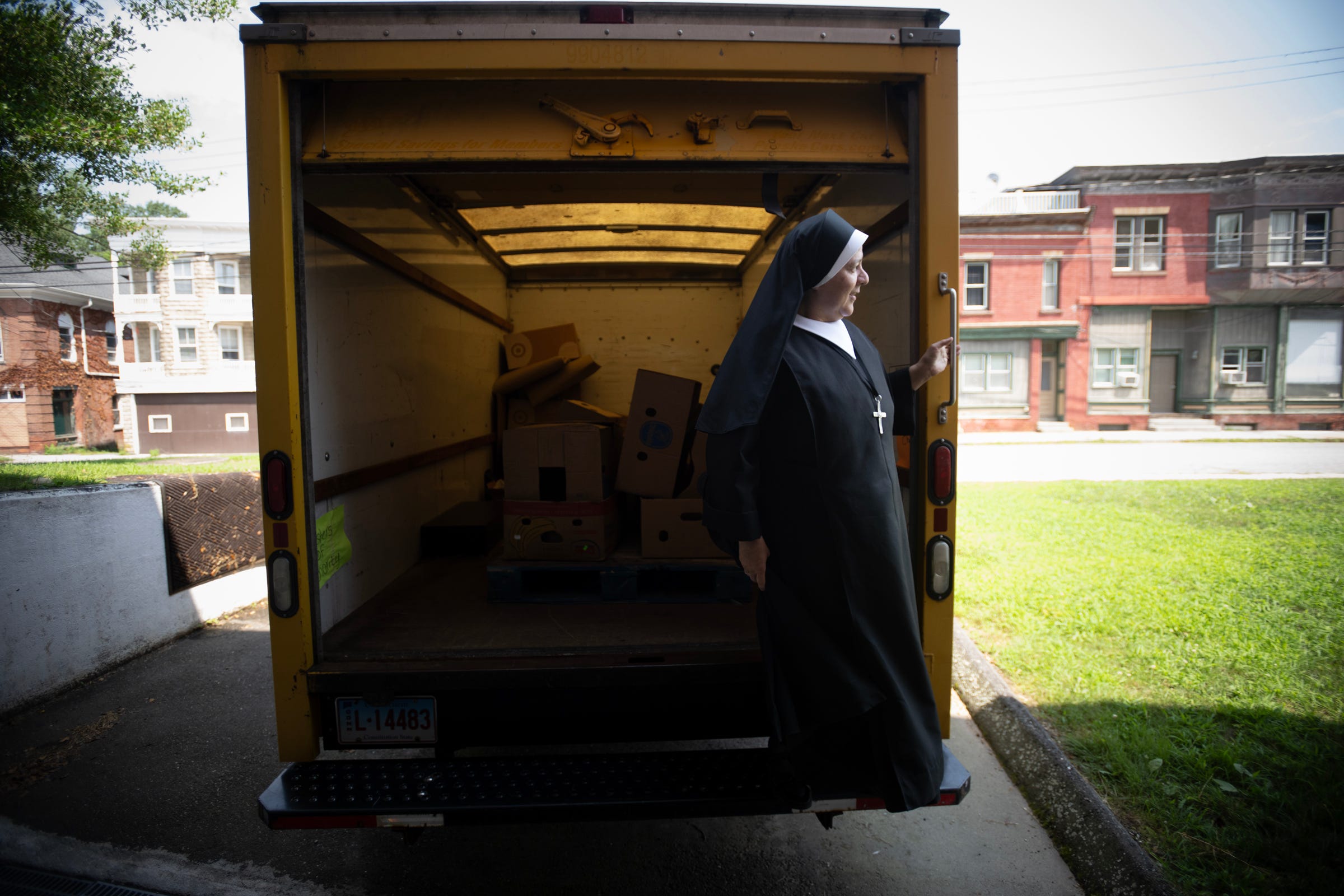 Later that day, I had followed two of them down to the food pantry at the edge of the property. It wasn’t large, but there was a steady movement of people coming and going. Out back, they showed me the truck they use to gather and deliver food, an old, retired rental, now pressed quietly into a different kind of service.