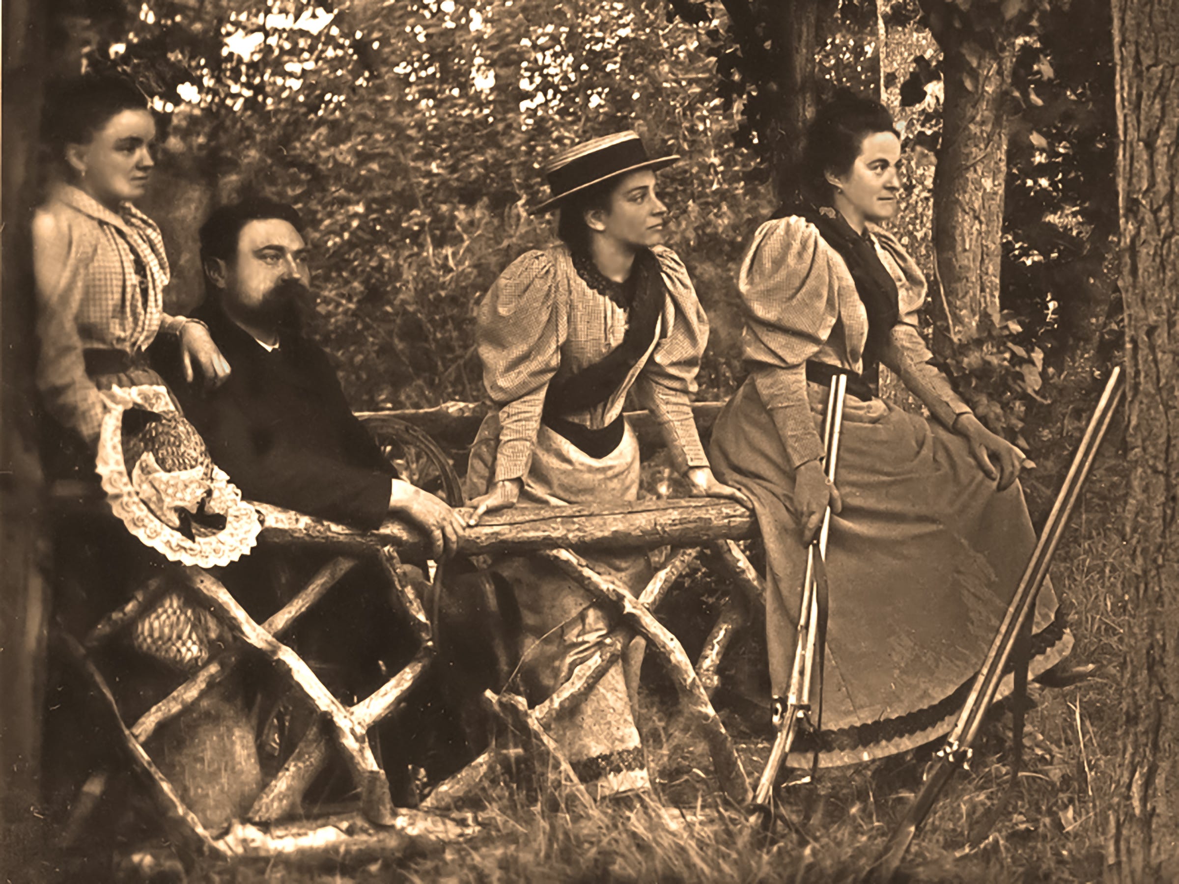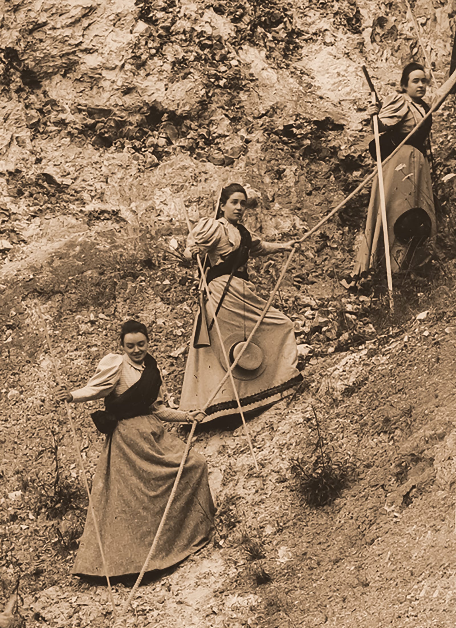 In July of 1894, Céline and some of her friends and family staged and photographed a twelve-scene production titled Voyage excentrique aux Cordillères des Andes—The Eccentric Voyage to the Andes. It was a kind of comedic “photo-theatre,” inspired by the Chilean travels of their friend, Abbé (Father) Joseph de Cornière, and performed on the Guérin family estate known as La Musse.