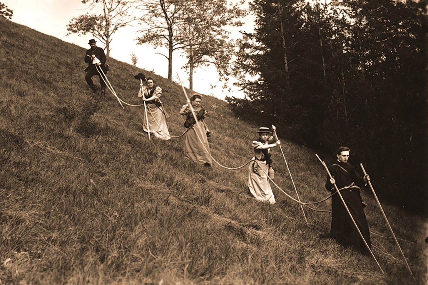 The explorers lose their way. They tumble down ravines. They encounter a “panther.” They rescue one another with ropes. And finally, they return home—triumphant.